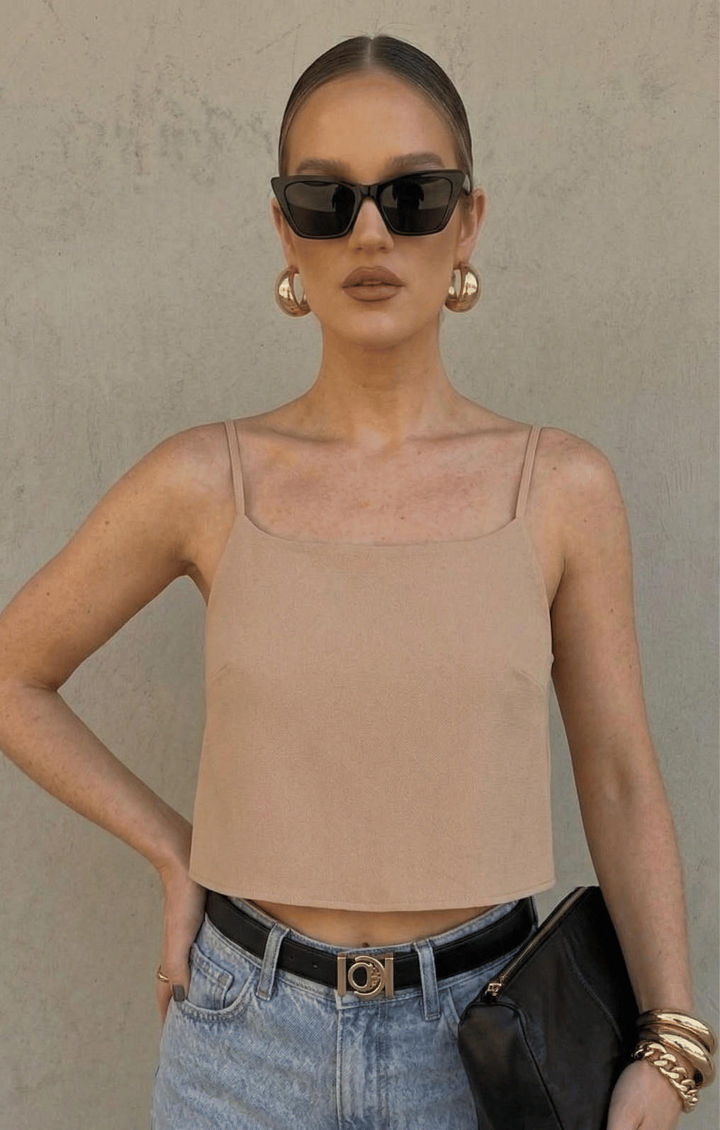 O Cropped de Alcinha - Areia é a peça-chave para quem busca praticidade e estilo em um só look. Com tecido de alta qualidade e uma modelagem que valoriza a silhueta, ele é perfeito para compor desde produções casuais até mais sofisticadas.