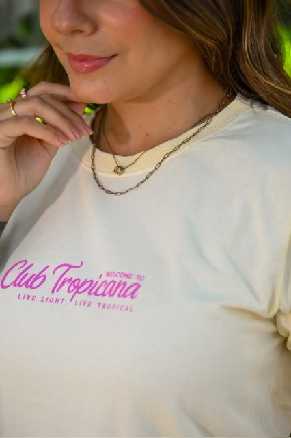 Tradução: Bem-vindo ao clube tropicana viva leve, viva tropical.