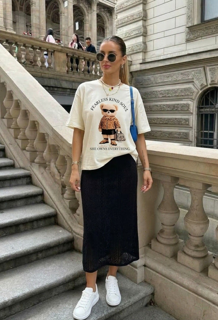 Com um design moderno e cheio de atitude, a T-Shirt Fearless – Off White foi criada para quem gosta de expressar personalidade através do estilo. Versátil e confortável, ela é perfeita para compor looks casuais com um toque de autenticidade, trazendo uma proposta atual e cheia de significado.