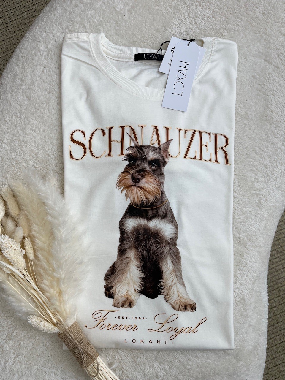 Detalhes: Gola redonda com ribana, reforço ombro a ombro e estampa em DTF (Direct to Film).